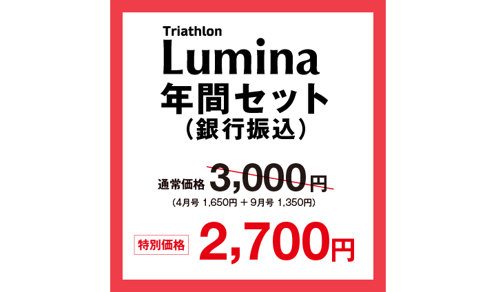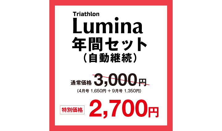 トライアスロン・ルミナは2026年から年2回刊行に変更となります。ご購入はお得な特別価格で、買い忘れのない「年間セット」がオススメです。