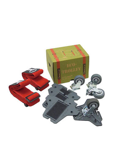 QBICLE ECO-TROLLYは、スポーツバイク用輸送ケース「QBICLEバイクポーター」にオプションで装着出来るキャスターセットです。マジックテープを使用した2本のベルトで簡単に装着でき、海外や離島の遠征など、移動がとても楽になります。QBICLEバイクポーターに限らず、他社の様々な自転車輸送ケースに使用可能です。